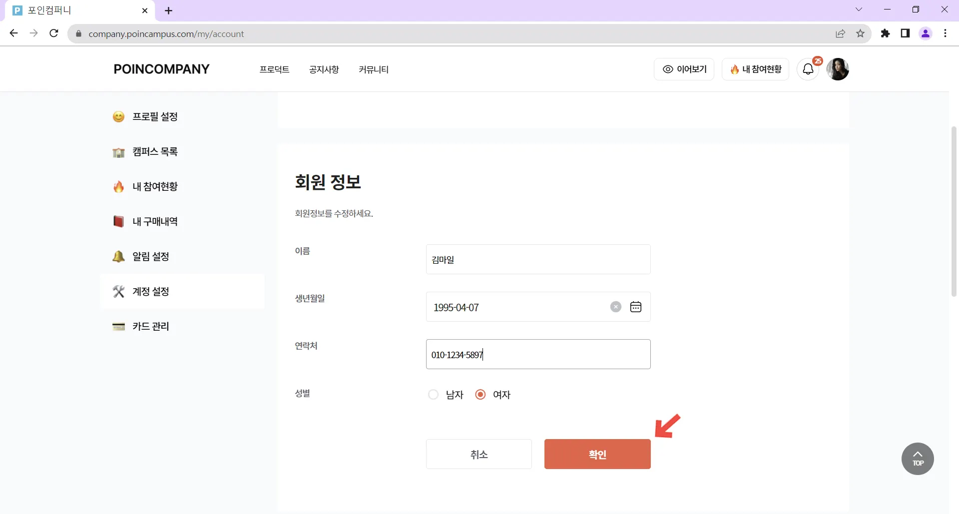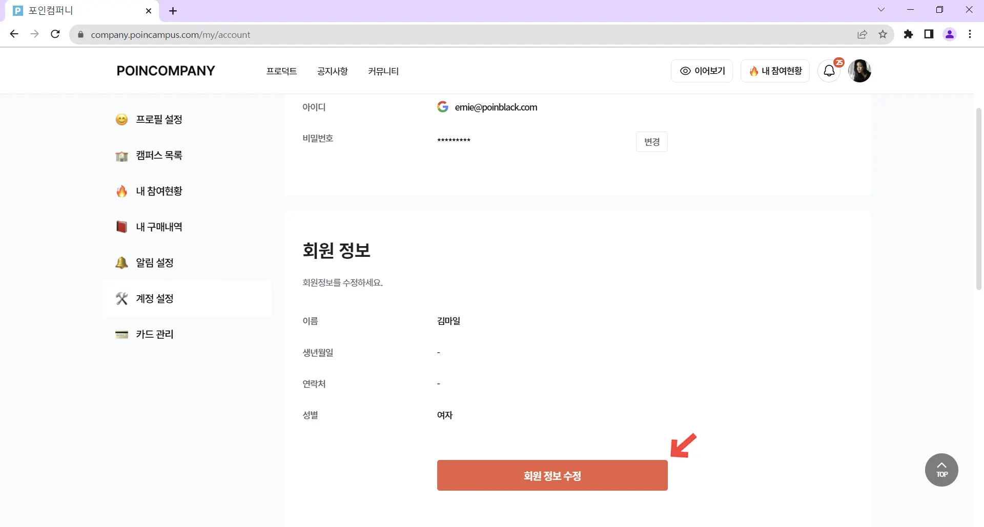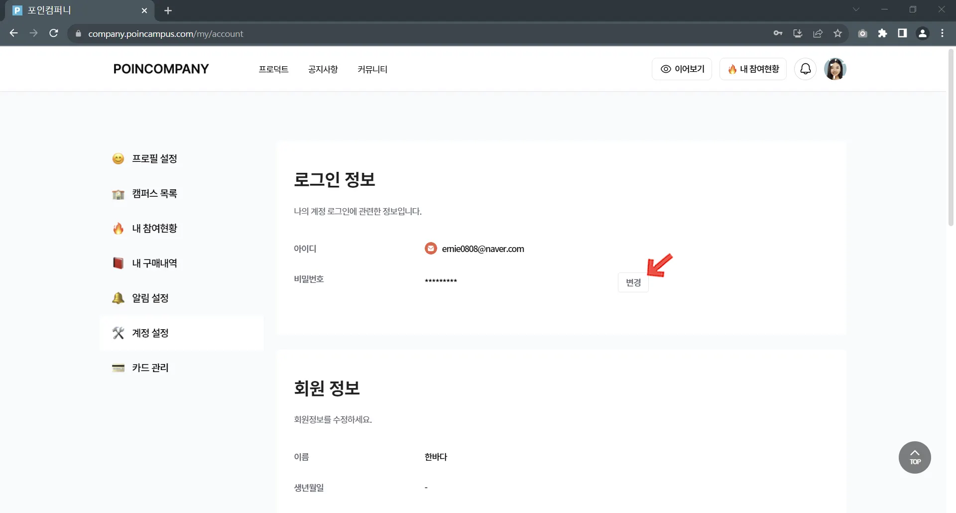 회원 정보 수정 시 회원 정보 수정을 클릭해 주세요.