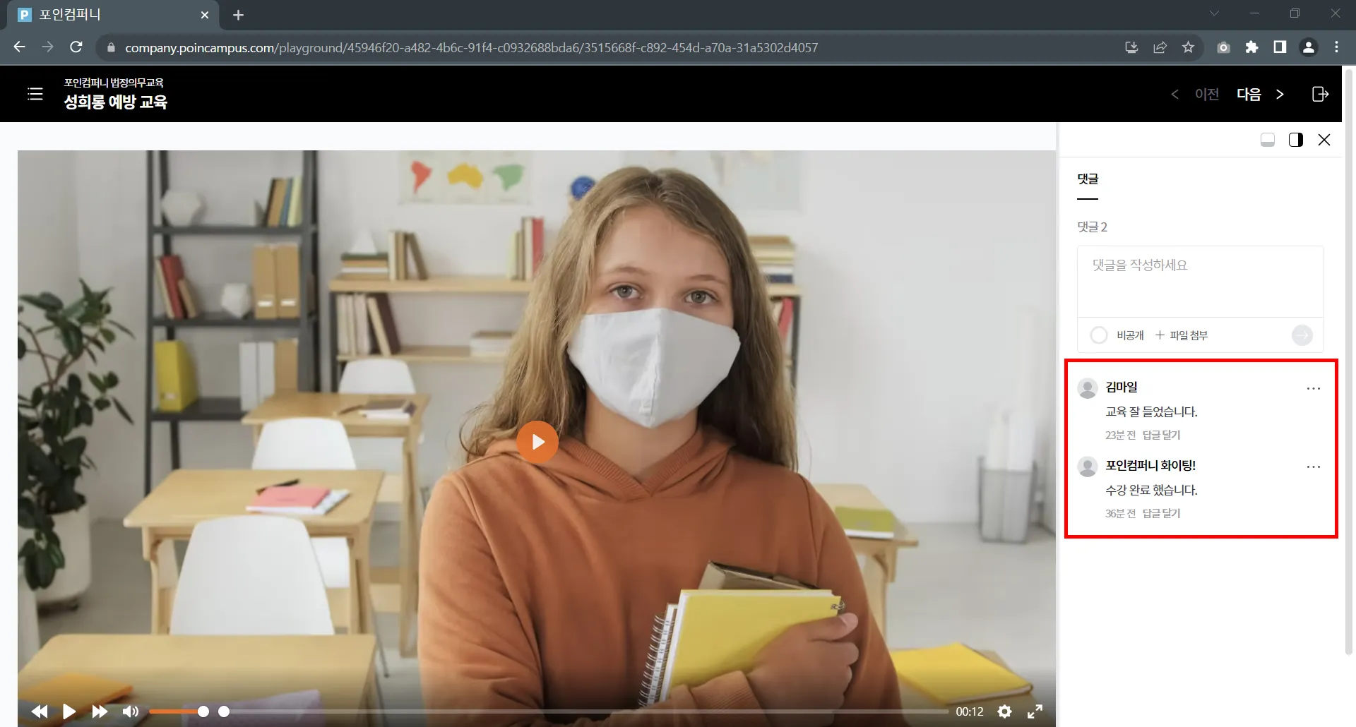 콘텐츠 화면에서도 회원이 작성한 댓글을 확인할 수 있습니다.