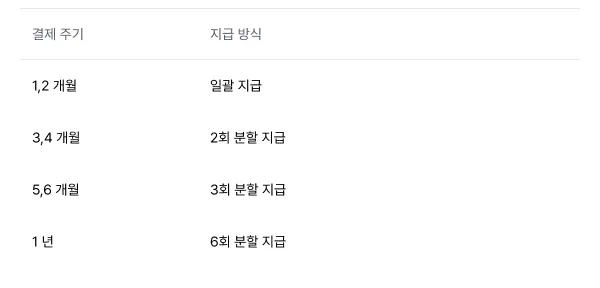 예시) 정기구매 A건 - 결제 주기 : 3개월 & 결제 금액 : 90,000원 → 2회 분할지급