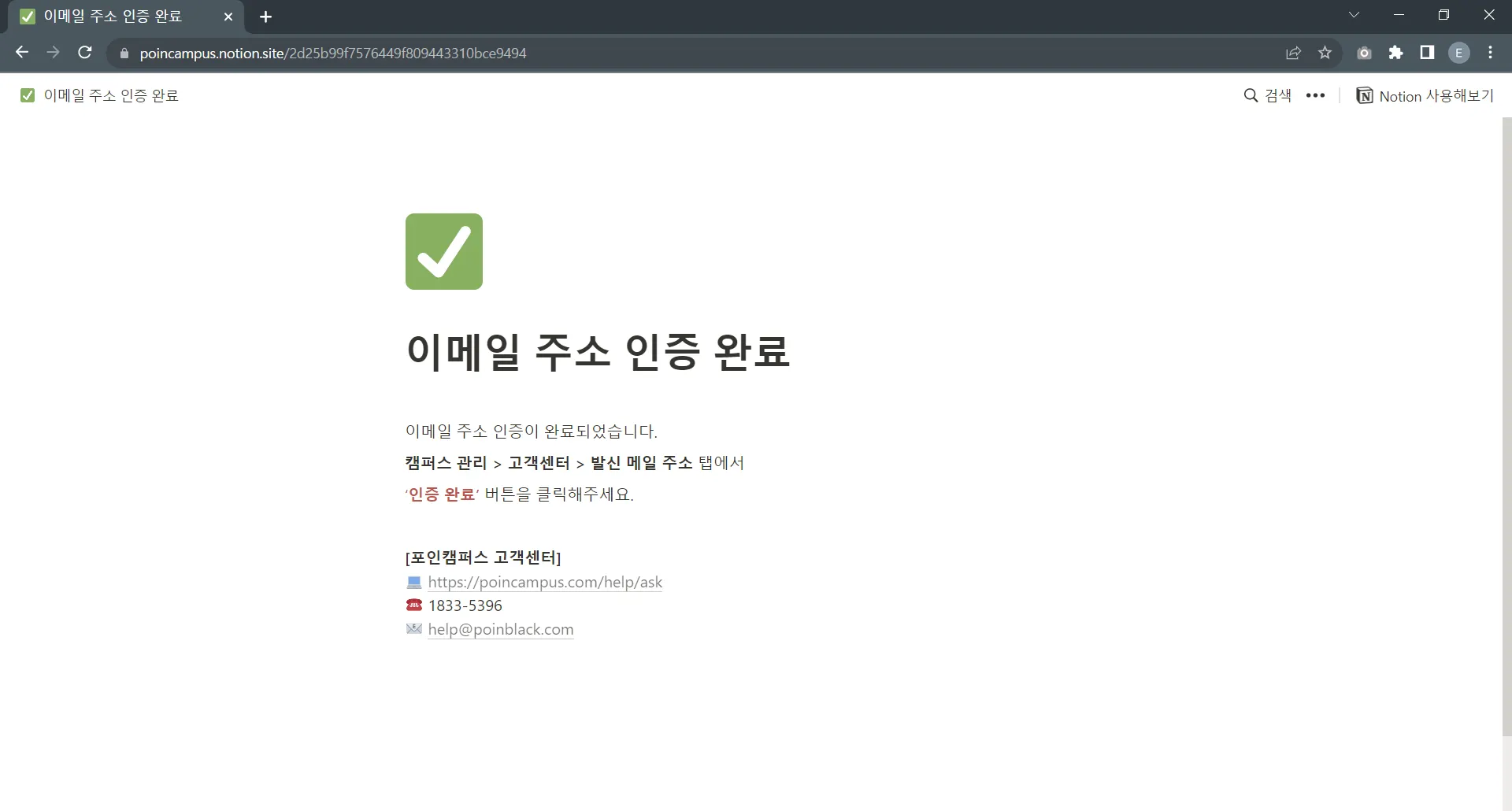 이메일 주소 인증 완료 페이지로 넘어가면 인증 완료입니다.