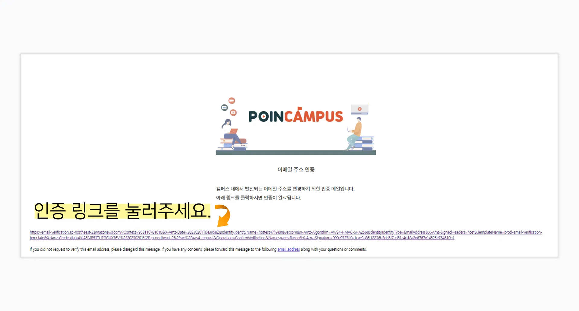 메일함에서 이메일 인증 절차를 위한 메일을 확인하여 인증 링크를 클릭해 주세요.