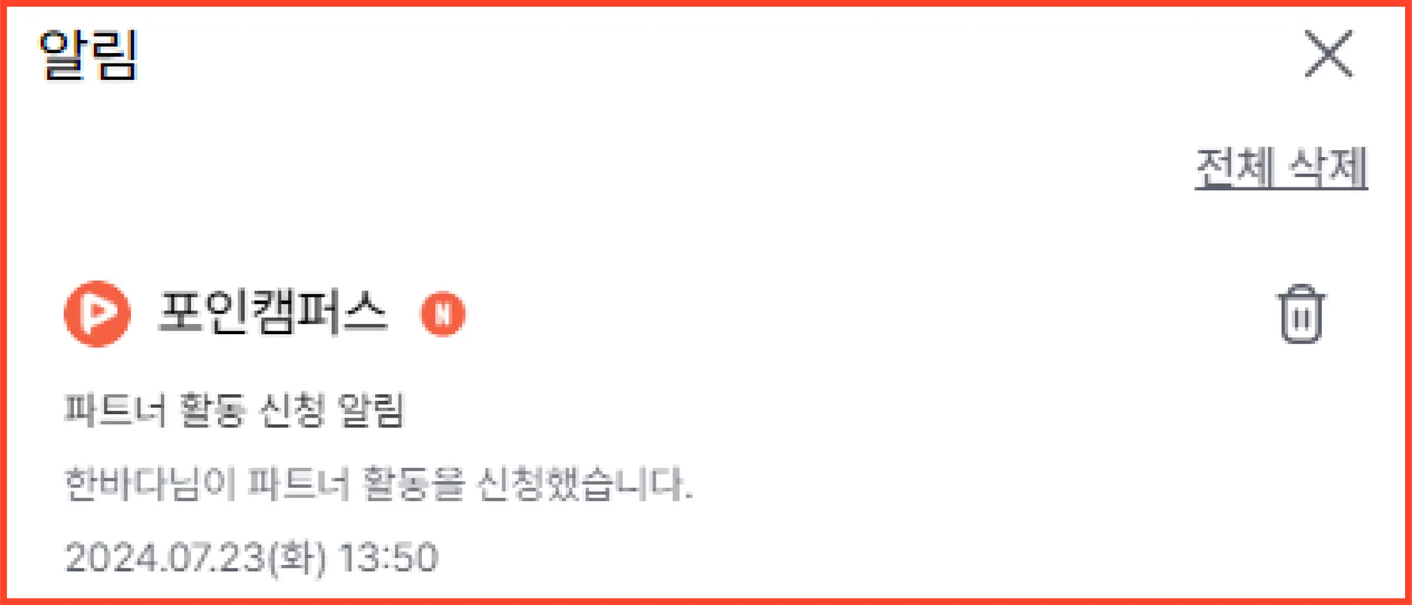 파트너가 여러분의 캠퍼스에 ‘파트너 활동’을 신청한 경우, 이메일과 알림으로 확인할 수 있습니다.
