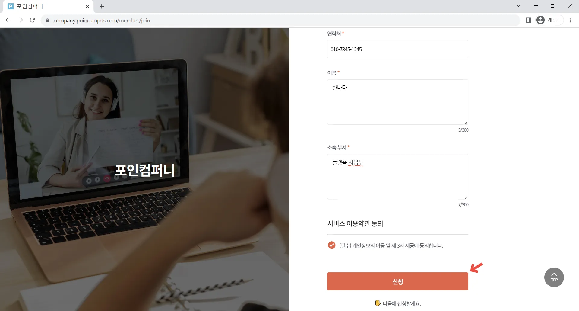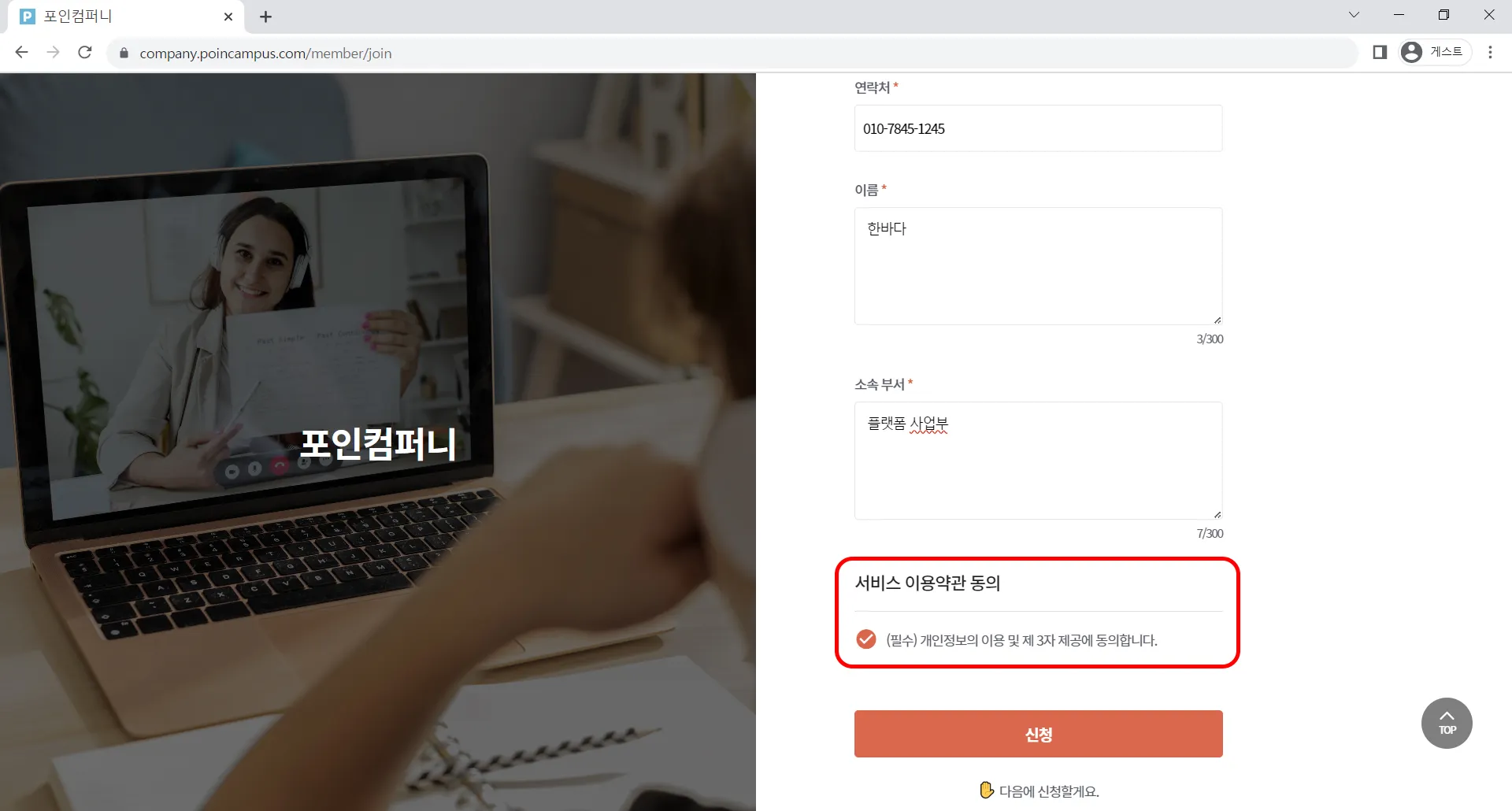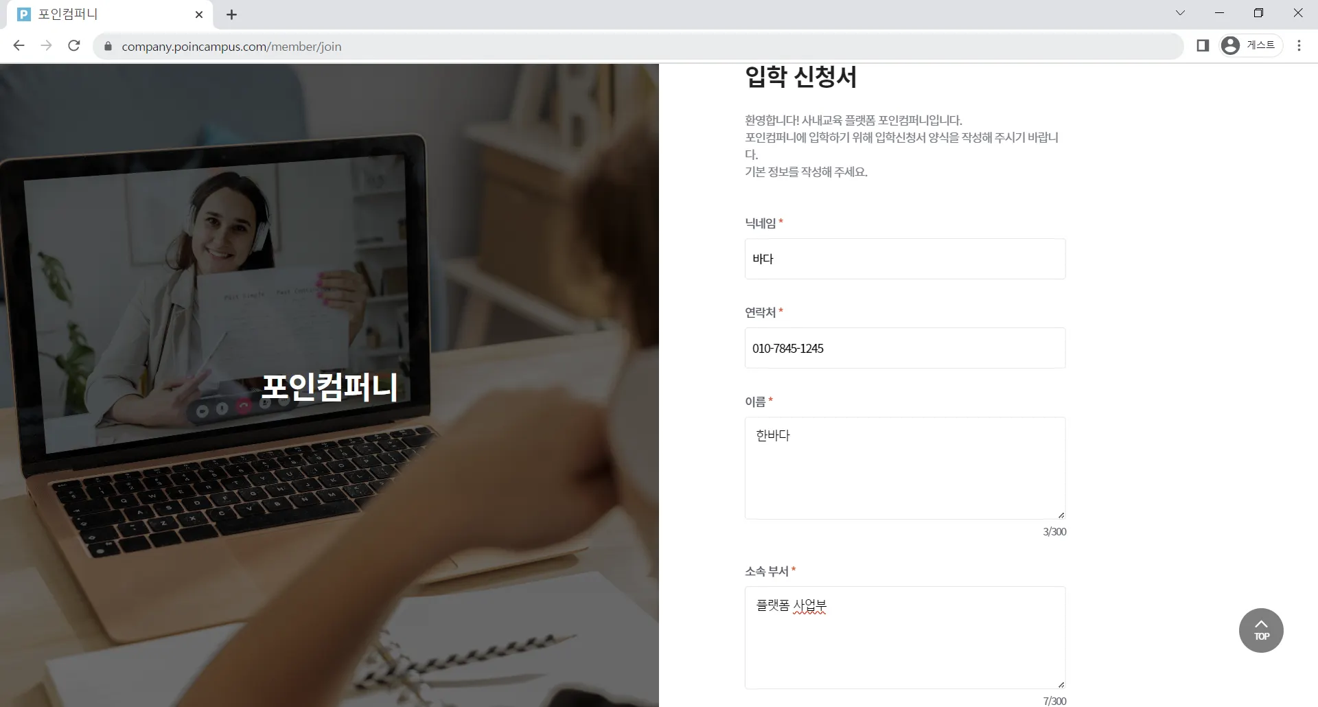 캠퍼스에 입학을 신청하면 자동으로 캠퍼스 입학 승인이 완료됩니다.