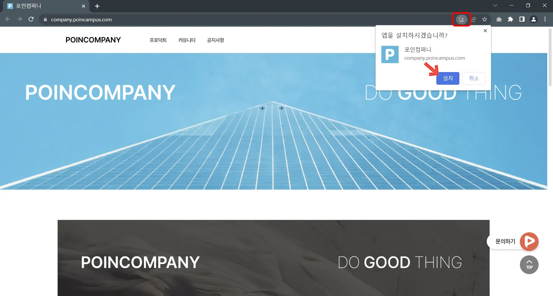 브라우저 상단에 설치 팝업창이 표시되면 설치 버튼을 클릭해 주세요.