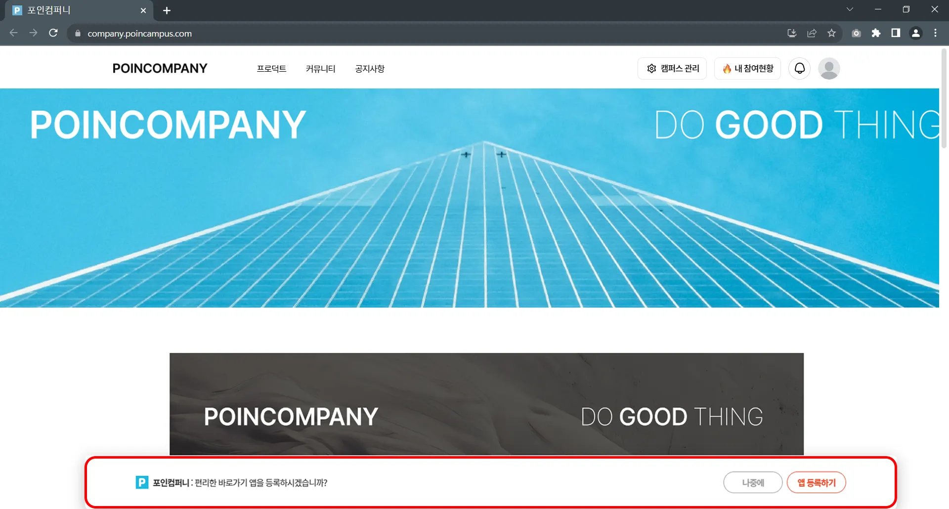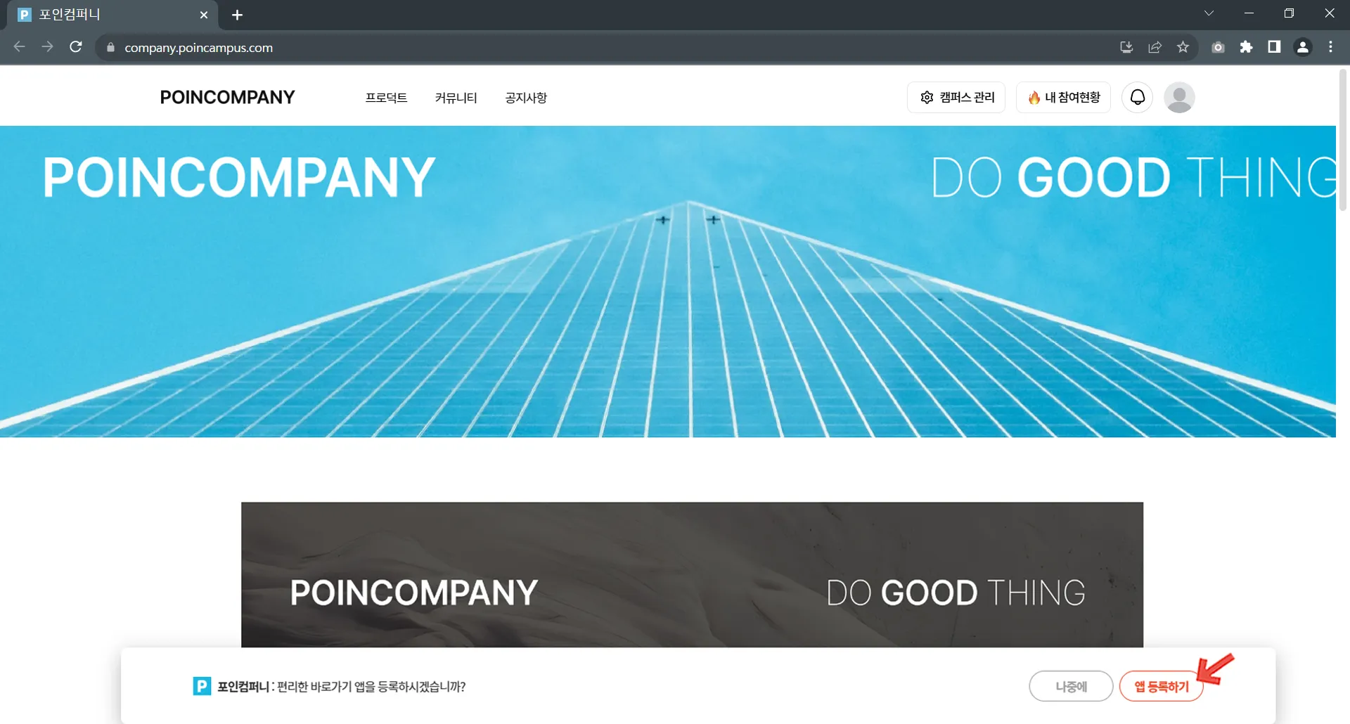 캠퍼스에 접속하여 하단의 앱 등록하기 배너를 확인해 주세요.