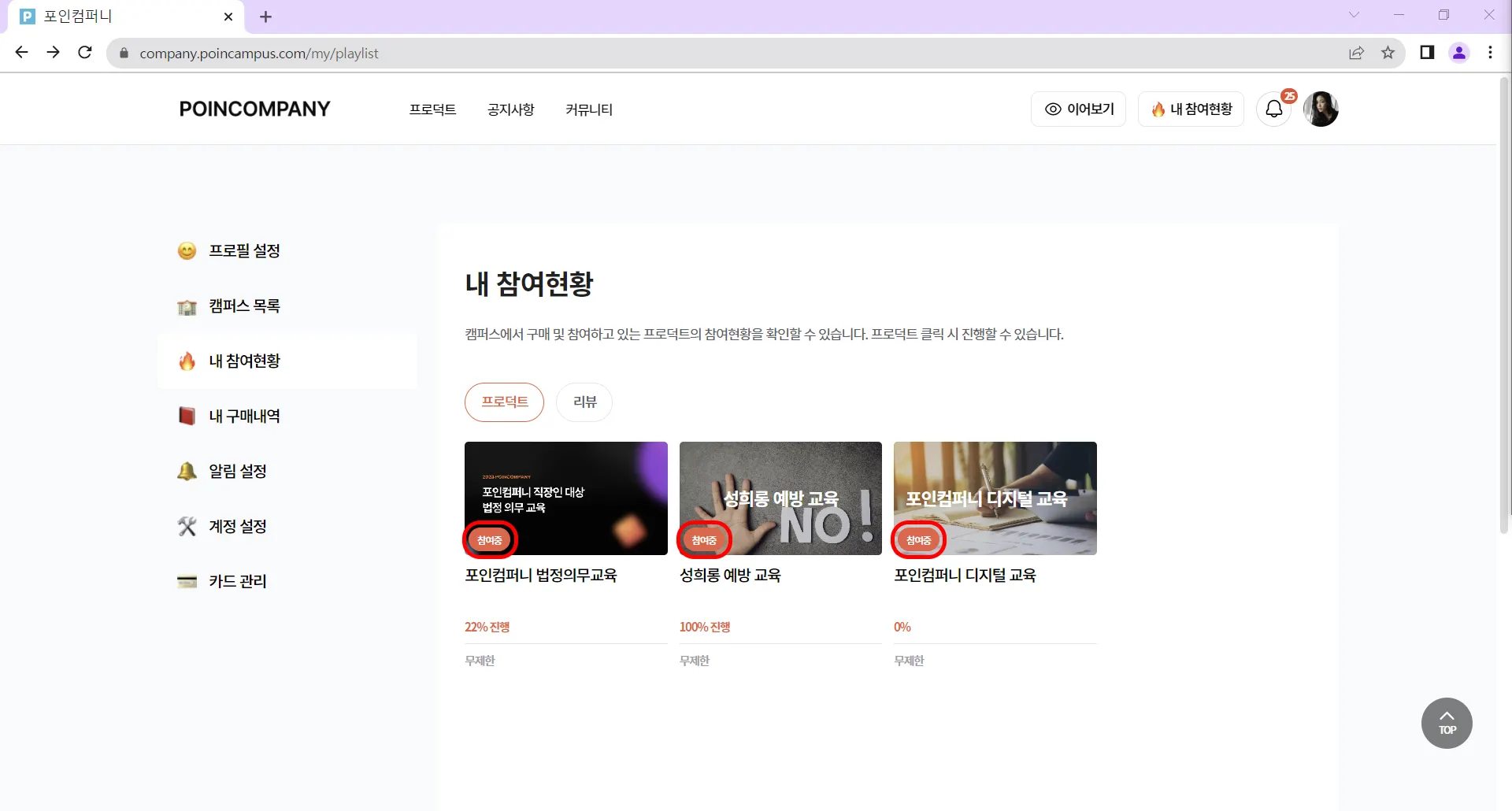 내 참여현황에서 프로덕트를 클릭하여 마지막 시청 지점으로 이동하는 것과는 달리,