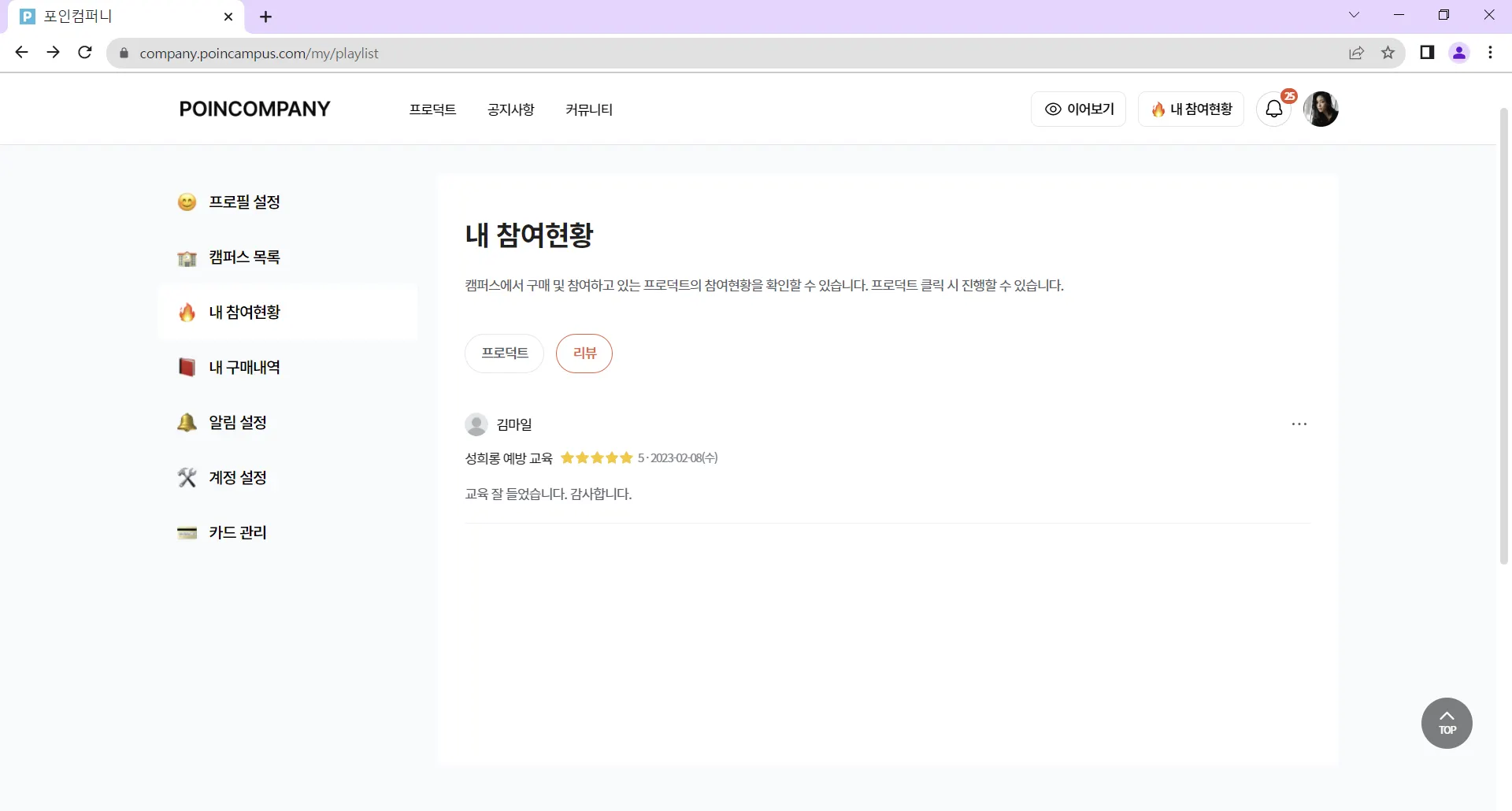 캠퍼스에서 참여하고 있는 프로덕트 참여 현황을 파악하고 프로덕트 수강 후 남긴 리뷰 내역을 확인할 수 있습니다.