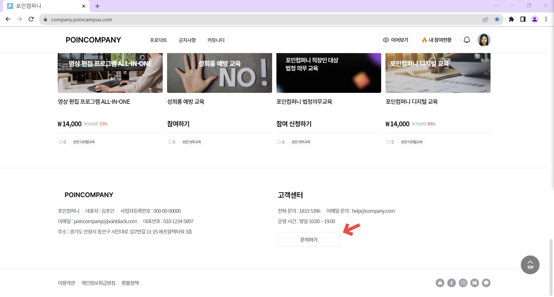 캠퍼스에 방문하여 가장 맨 하단으로 내려 고객센터 영역을 찾아주세요.