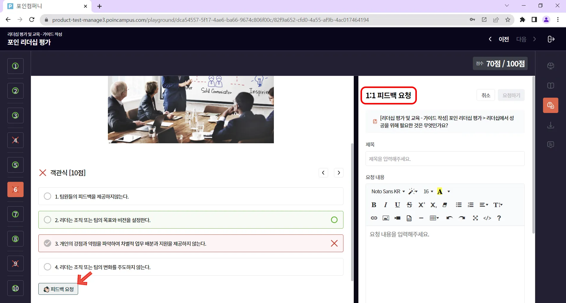 피드백 요청 버튼을 클릭하여 요청 내용을 작성할 수 있습니다.
