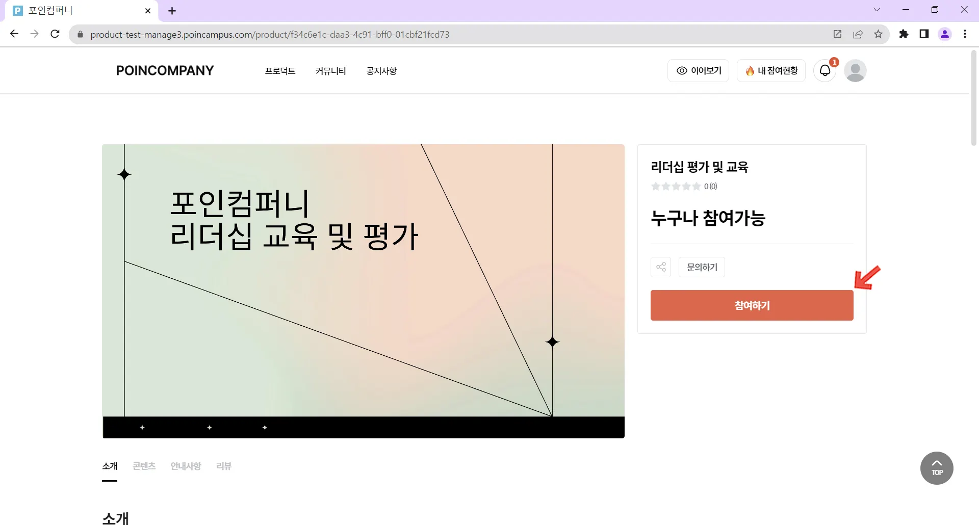 퀴즈를 풀 수 있는 프로덕트의 참여하기를 클릭하여 참여합니다.