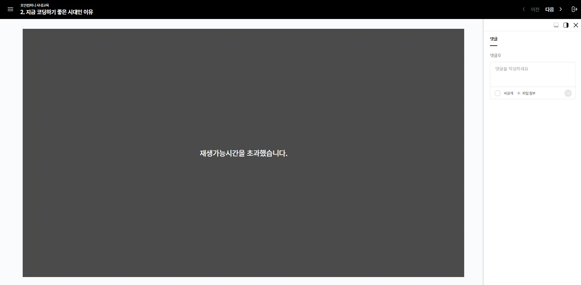 최대 재생 시간을 넘긴 경우 재생 가능 시간을 초과했습니다 문구가 나타납니다.