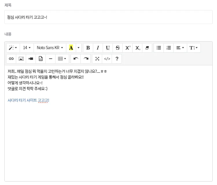 게시글 작성 후, 등록하기를 클릭하면 게시글이 등록됩니다.
