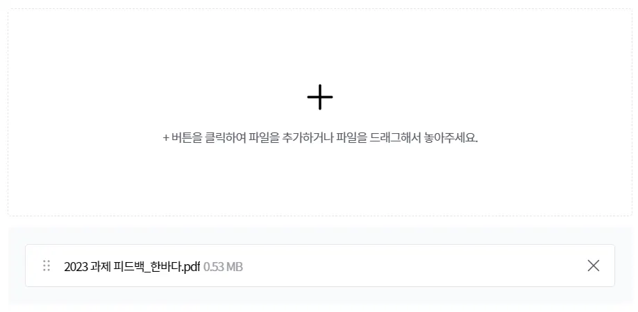 (+) 버튼을 클릭해 파일 첨부 혹은 드래그해 주세요.