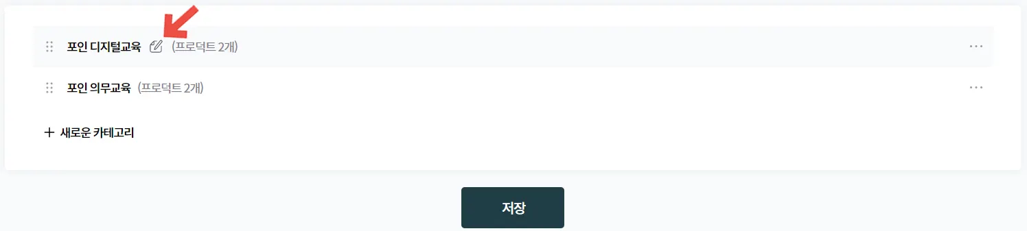 카테고리에 마우스를 가져다 두면 수정 아이콘이 나타납니다. 수정 아이콘 클릭 시 카테고리 이름을 수정할 수 있습니다.