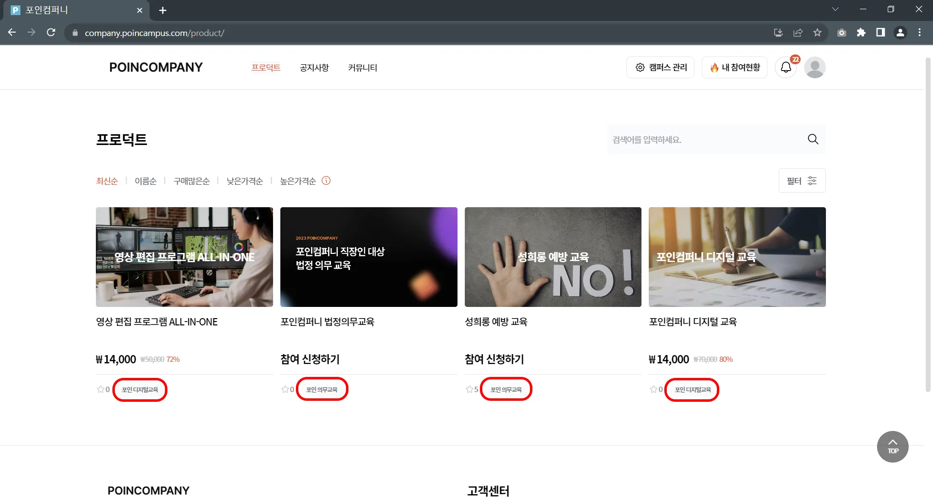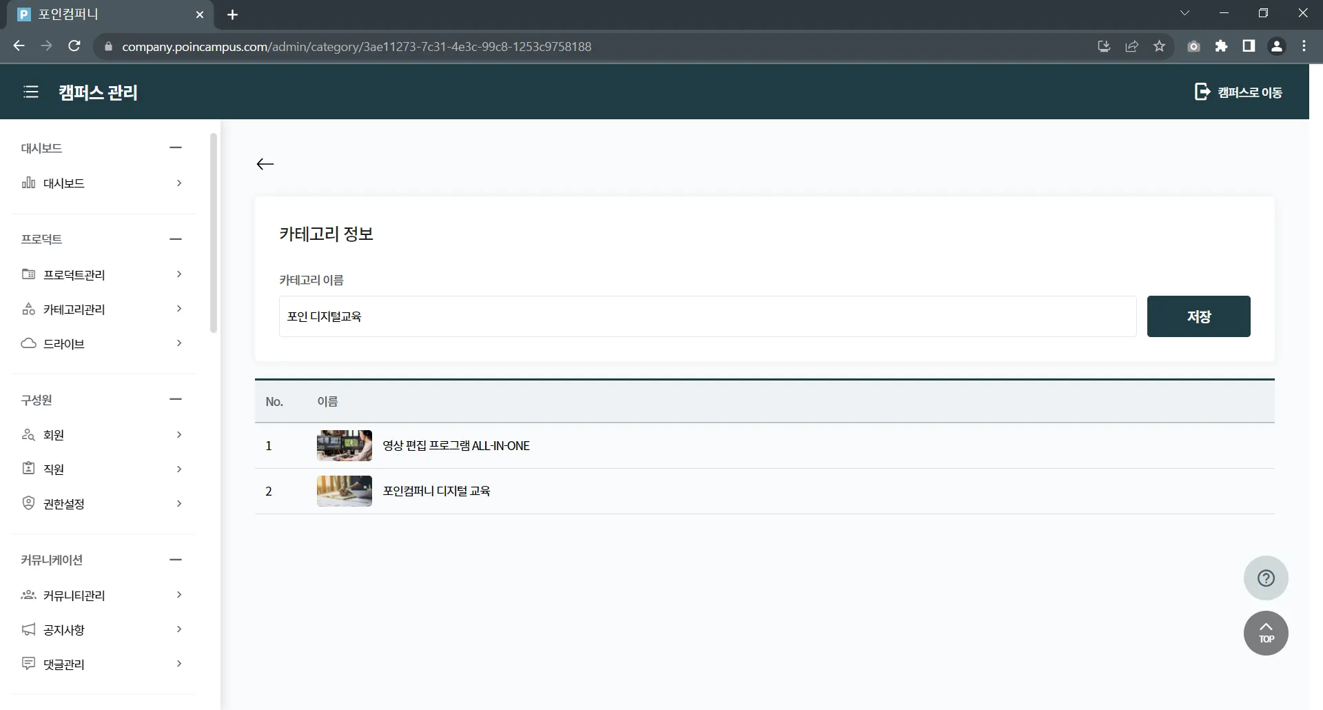 캠퍼스 관리 > 프로덕트 - 카테고리 관리