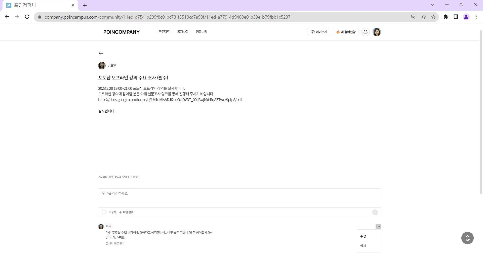 게시글에 댓글을 작성할 수 있습니다.