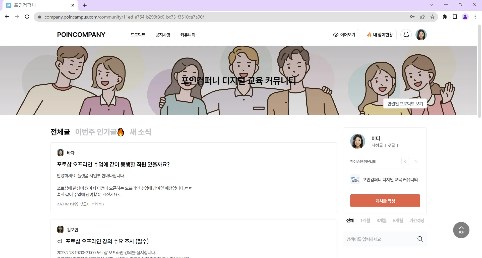 커뮤니티에 참여하는 방법은 프로덕트 홈 > 연결된 커뮤니티를 통해 참여하거나,