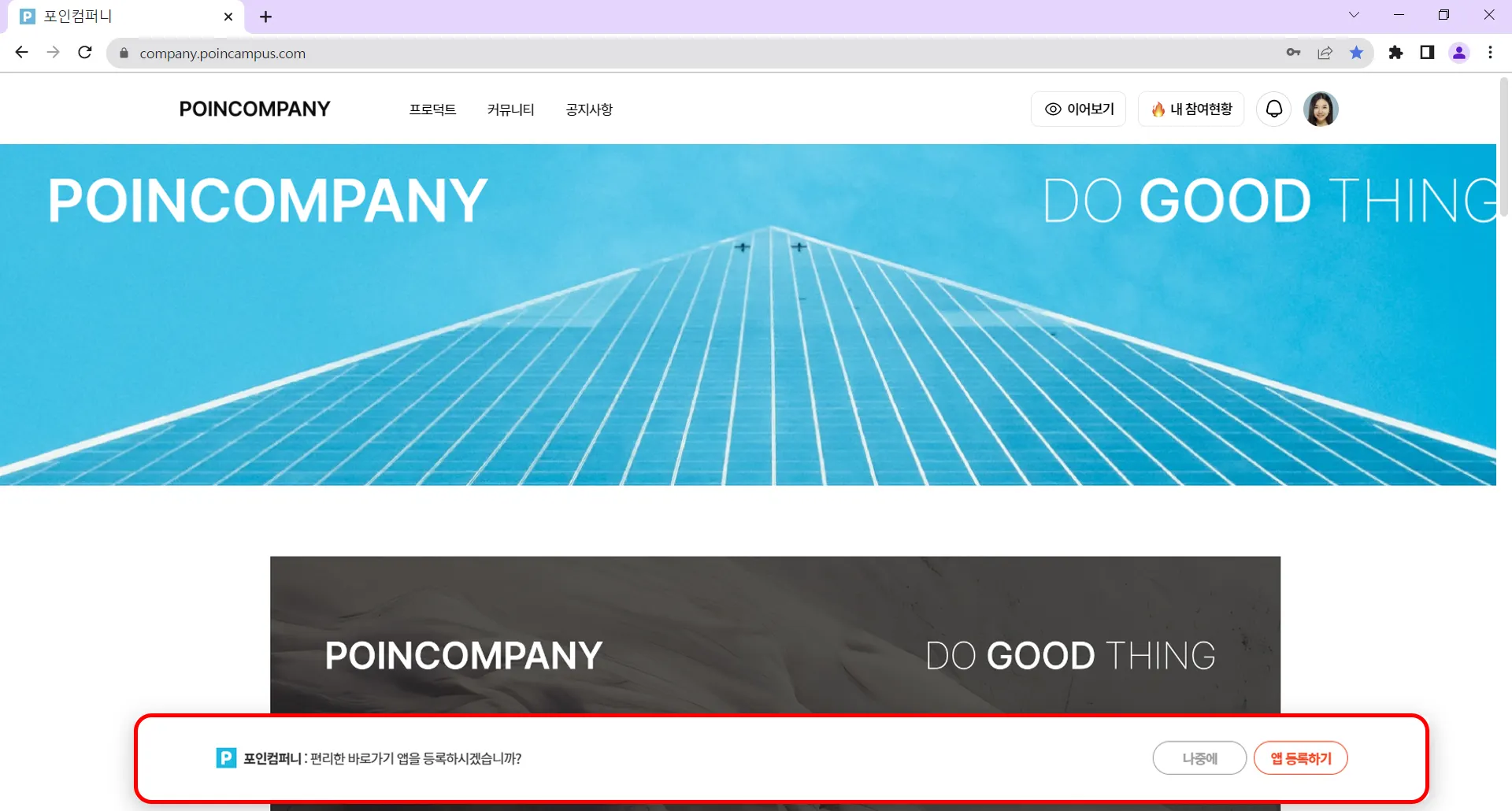 나중에 버튼을 클릭하면 3일까지 해당 배너가 노출되지 않습니다.
