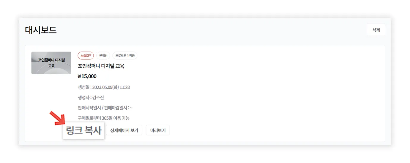 판매되고 있는 강의를 노출하지 않고 URL 주소만 특정 회원에게 제공하여 판매 운영할 수 있습니다!