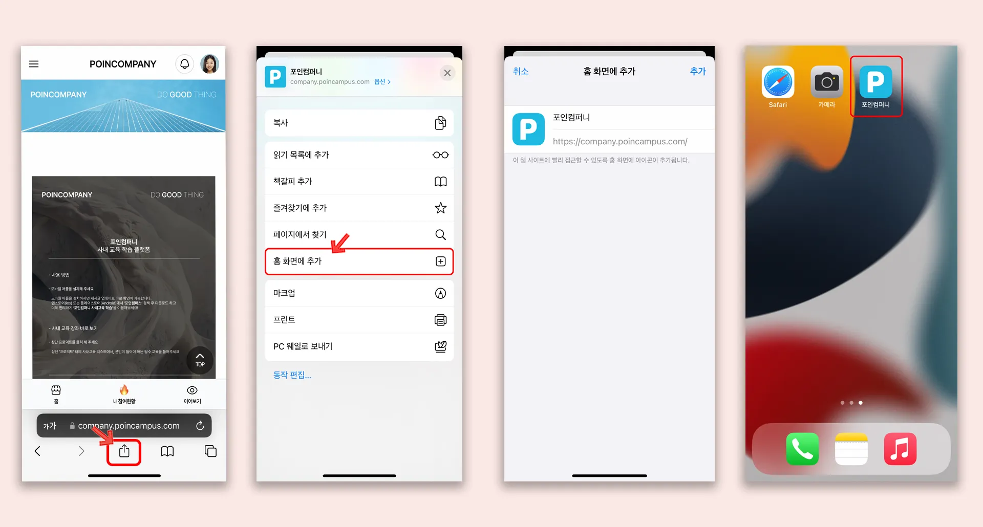 홈 화면에 추가 버튼을 클릭해 주세요.